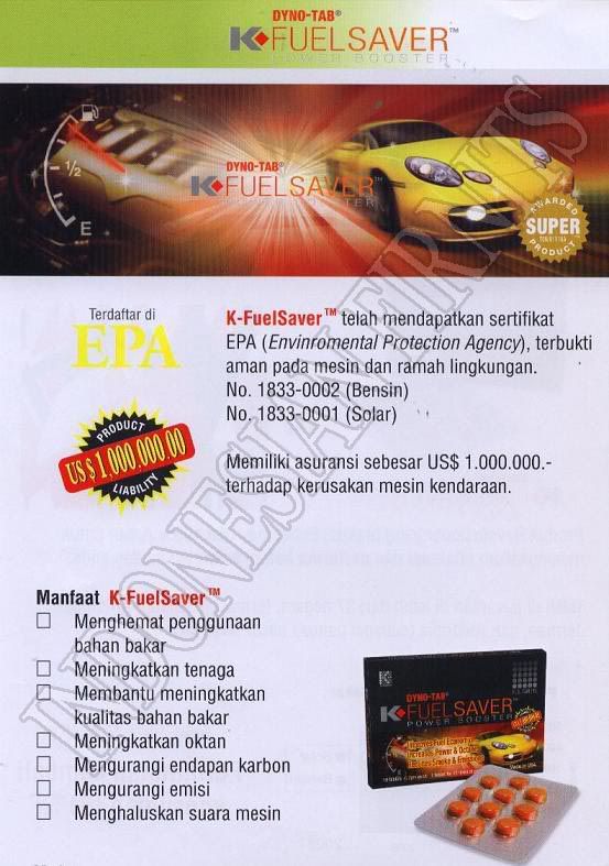 K-Fuel Saver dengan US$1,000,000 Garansi Asuransi Produk. Ini akan menaikkan rasa percaya dari pelanggan dari mitra bisnis untuk mempromosikan atau menggunakan produk ini.