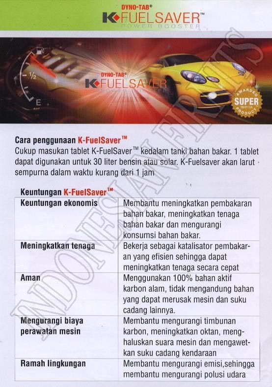 *Cukup masukan tablet K-FuelSaver kedalam tangki bahan bakar